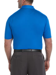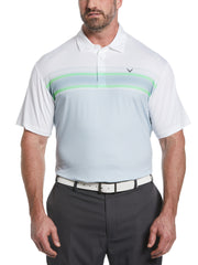 Engineered stripes across the front panel bring energy to this classic golf polo from Callaway. The men’s polo shirt is crafted from light and breathable jersey knit fabric, with moisture wicking to help keep you dry so you can stay focused on making par. The material offers a good amount of stretch, for a comfortable fit and a full range of motion. Sun protection technology helps to block damaging UV rays when you’re playing under clear blue skies.