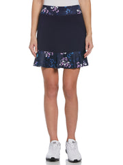 This stylish Callaway women’s golf skort is all about the details. A butterfly floral print pops on the waistband and at the flattering flounce hem for a fresh and fashionable look. Soft jersey fabrication with added stretch allows for a full range of motion as you bend and swing, while the TrueSculpt™ panel helps smooth your shape with a slimming effect. Opti-Dri moisture-wicking technology pulls away sweat, keeping you cool and comfortable. Side and back pockets provide hands-free storage space and the 17” length of this golf skort offers comfortable coverage.
