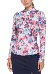 Womens Brushed Floral Print Sun Protection Golf Shirt