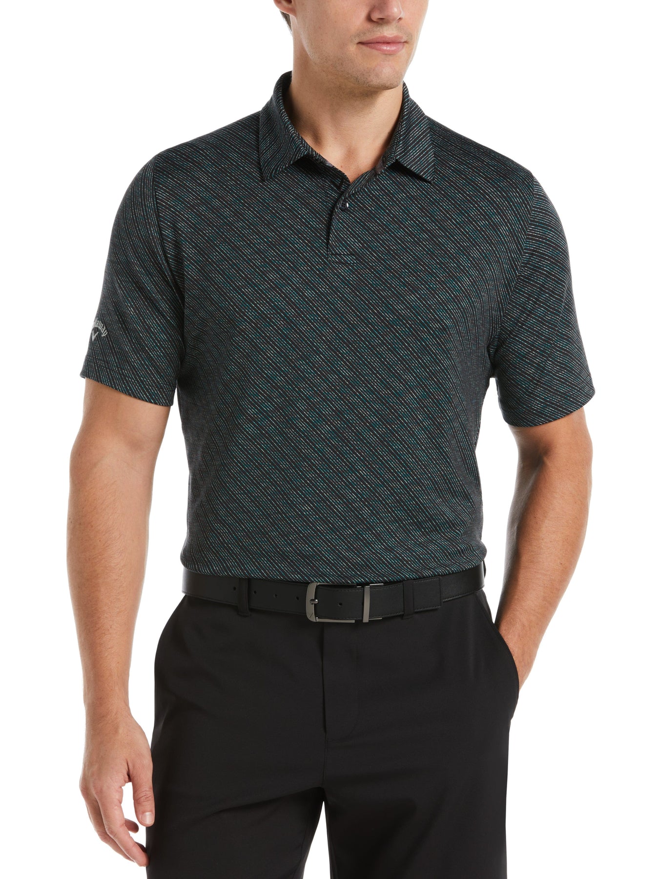 Printed with dynamic diagonal lines, this Callaway men’s polo shirt will bring a boost of energy to your golf attire. Designed for impressive comfort, the golf top is made with premium soft yarns for a luxuriously soft hand feel and features ventilation and moisture wicking to help you stay cool and dry. A hint of stretch in the fabric and innovative Swing Tech™ technology help to ensure a full range of motion during so you can focus on your form. Made with 30% recycled polyester to help reduce waste, it's a great choice you can feel good about.