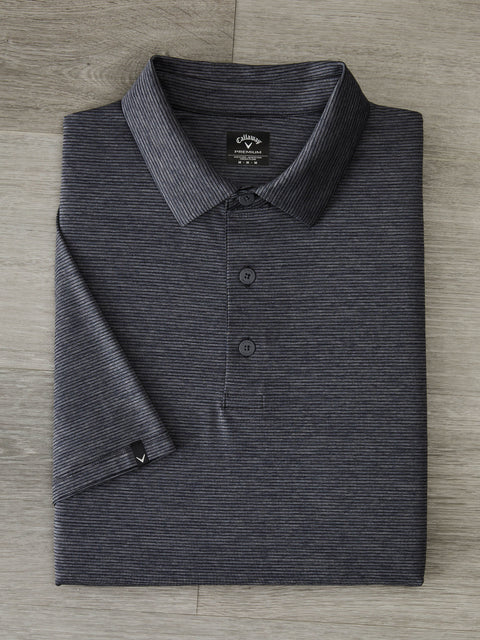 This Callaway men's golf shirt was made for superior performance and style. Crafted with elevated yarns and construction and featuring an intricate fineline pattern, this golf polo shirt has a stylish and elevated aesthetic that suits both the green and the club. The innovative construction ensures durability while Polygiene StayFresh technology helps combat odor for all-day freshness. This golf top is made with soft jersey fabric for all-around comfort.