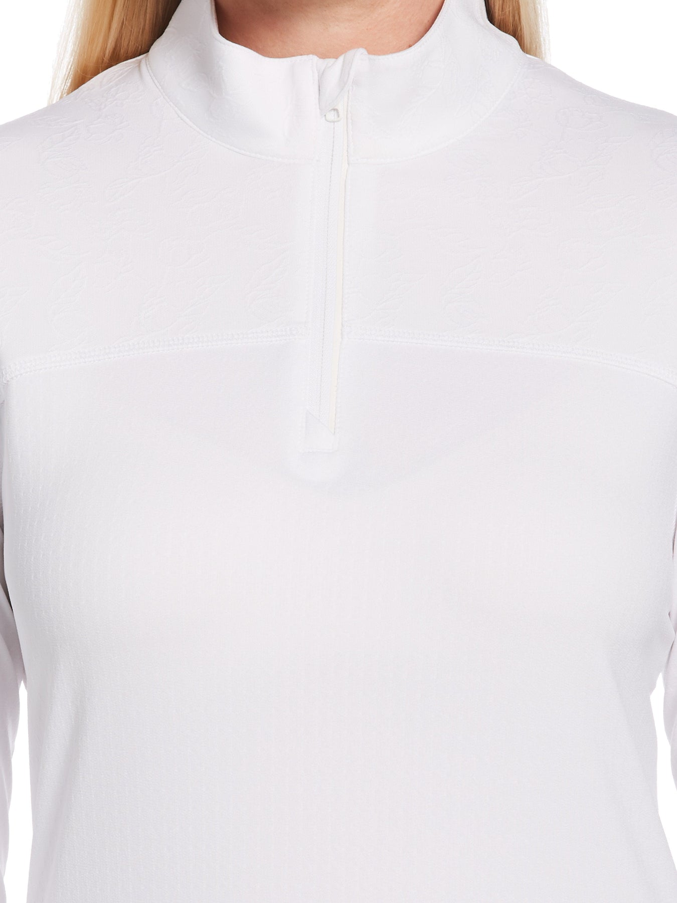 Made with stretch fabric for enhanced freedom of motion, this Callaway women's golf shirt will be a comfortable and stylish addition to your athletic arsenal. Opti Dri™ moisture-wicking helps to keep you cool and dry during long training sessions, while the long sleeves extend over the backs of your hands for extra protection from the sun's damaging rays. Moisture-activated cooling technology helps you stay calm and focused on your performance when the pressure is on. The ladies' golf top is finished with jacquard blocking for an eye-catching raised pattern.