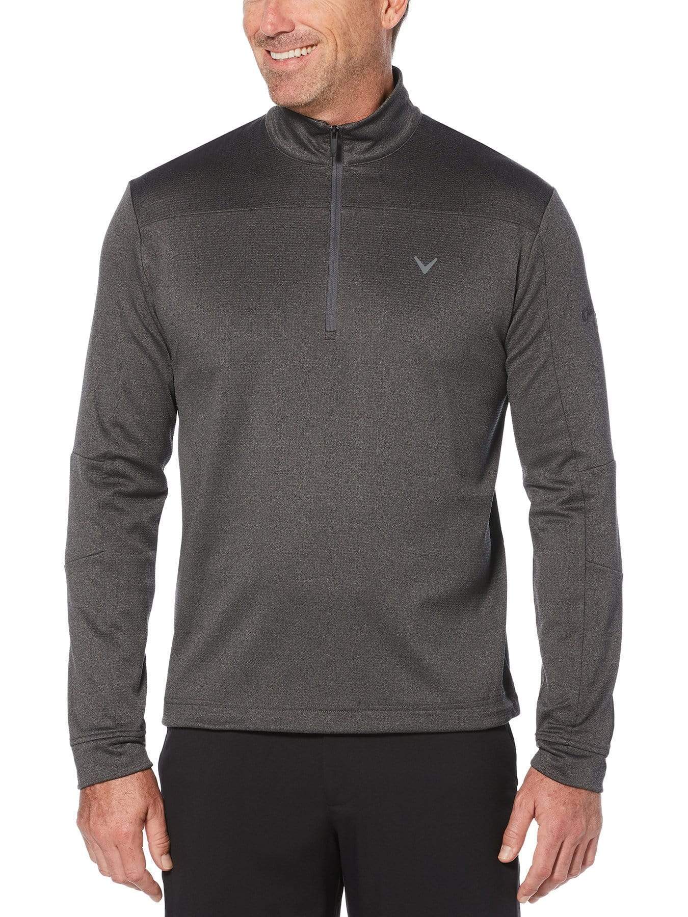 This Callaway men's midlayer golf pullover is built for performance. It's crafted from an insulated thermal waffle fabric with added stretch so you can stay warm and swing comfortably. Opti Dri™ moisture-wicking technology pulls sweat away from the body and UPF 50 protection resists damage from the sun's harmful rays. A 1/4 zip mock collar is easily adjusted for custom comfort.