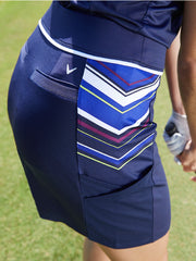 Featuring slim blocks of multi-colored stripes at the sides, this Callaway women’s golf skort offers sophisticated athletic style. The skort is made from a soft and light jersey knit fabric that has a good amount of stretch for all-day comfort. Moisture-wicking technology helps to keep you dry as you drive and putt through your round, while sun protection helps to block harmful UV rays from passing through the fabric. Truesculpt™ helps to create a smoother silhouette, while pockets at both the back and sides provide convenient on-the-go storage for small essentials. Highlighting Callaway’s commitment to sustainability, the women’s skort is made using 48% recycled polyester.
