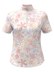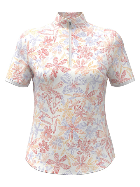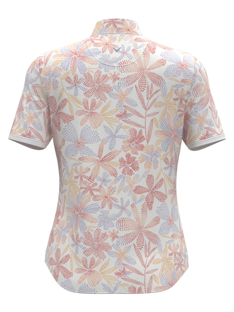 For smart style on the course and beyond, choose this short sleeve golf shirt from Callaway. This women's golf shirt has a polo collar and a front zipper closure for a smart, sporty look that's just right for a round of golf or a casual brunch. The abstract floral pattern adds a unique touch while the moisture-wicking technology helps you feel cool and dry before and after the game.