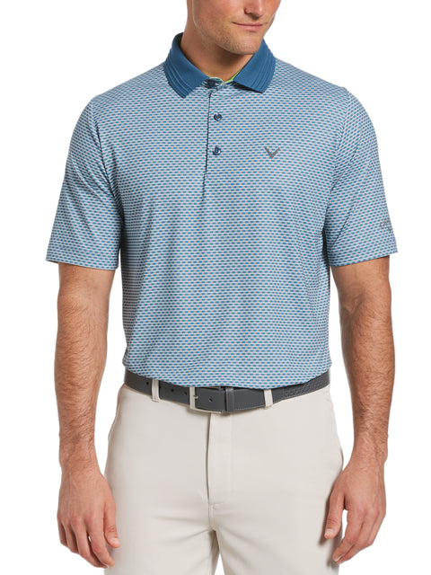 Ace your on-course style with this Callaway men’s golf shirt. This short sleeve golf polo features stretch fabric with Swing Tech™ technology to help you bend, twist and swing in comfort. Opti Dri™ moisture-wicking technology keeps you comfortable and dry. An allover chevron print and three-button placket with ribbed collar add classic style to this versatile golf polo.