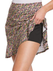 Decorated with a cheerful floral print and featuring an elegant ruffled hem, this Callaway skort will add both fun and feminine flair to your golf attire. Great for warm and sunny days out on the fairway, the women's golf skort has allover ventilation to help keep you cool. Moisture wicking moves sweat away from your body to help you stay dry. The ladies' golf skort is made from sturdy double knit fabric with a hint of stretch for a flexible fit.