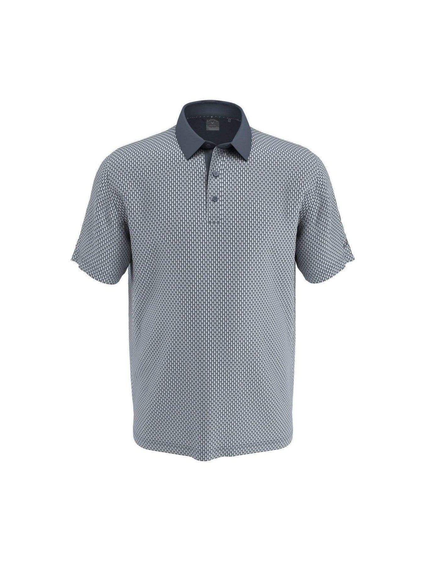 This Callaway men's golf shirt with an allover novelty print provides smart style and lightweight comfort. Built-in Swing Tech technology and added stretch enhance your range of motion. Moisture-wicking technology keeps you dry, and cooling technology transfers heat away from your body to keep you cool. Complete with UPF 50 for protection from the sun's harmful UV rays, this golf polo is a performance powerhouse.