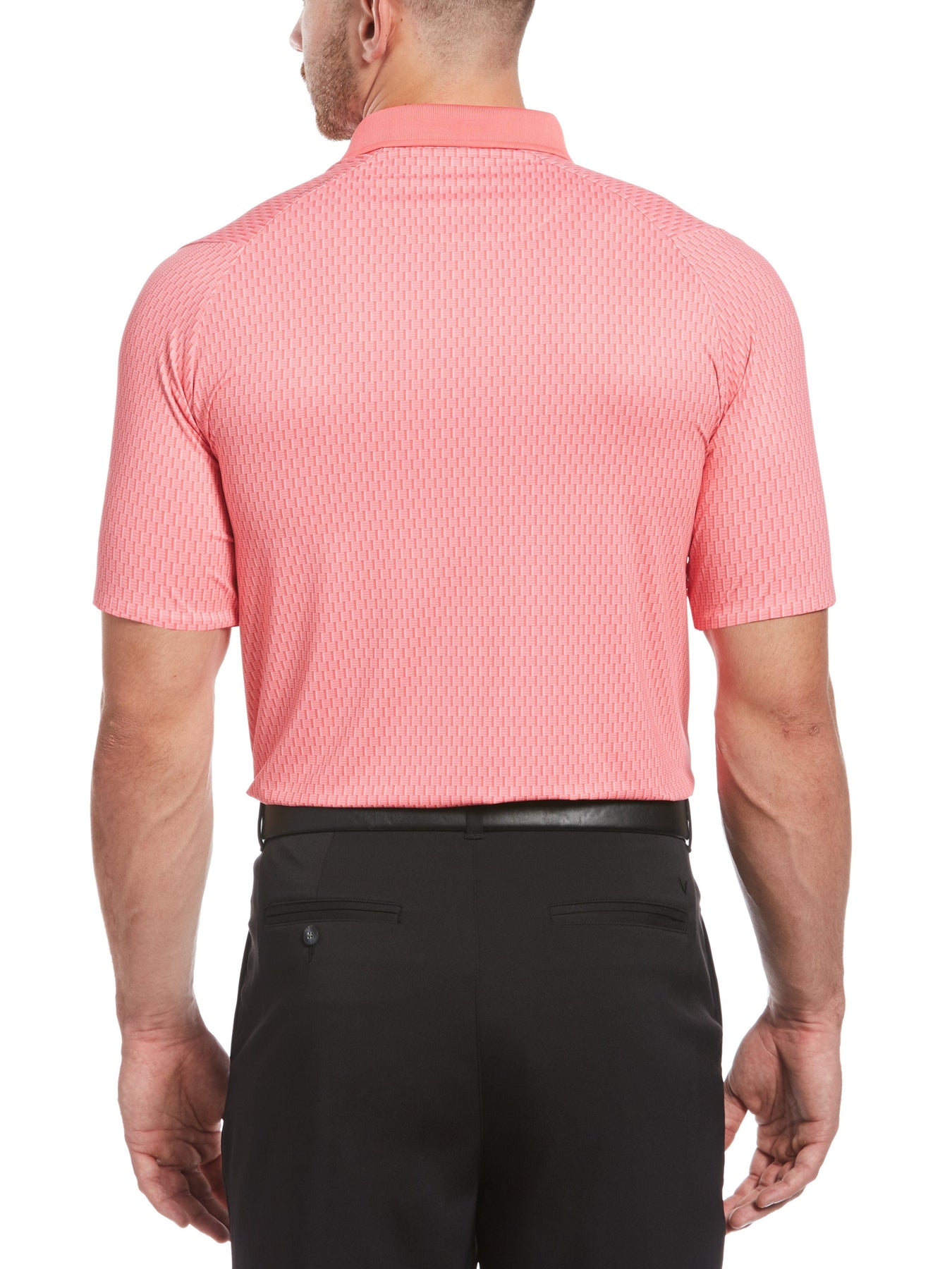 This lightweight Callaway golf polo with an allover tees print is crafted for style and ultimate on-course comfort. Built-in Swing Tech technology and added stretch enhance your range of motion. Moisture-wicking technology keep you dry, and cooling technology transfers heat away from your body to keep you cool. UPF 50 protection guards against the sun's harmful UV rays.