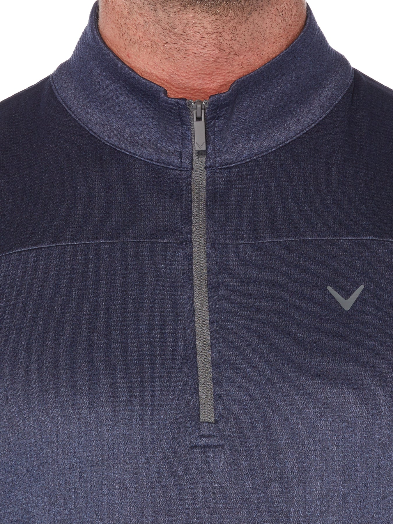This Callaway men's golf sweater is designed for high-performance comfort. The insulated thermal waffle fabric keeps you warm while Opti Dri™ moisture-wicking technology keeps skin dry. Built-in stretch enhances your range of motion and UPF 50 protection helps block the sun's harmful rays. It features a 1/4 zip mock neck collar that can be adjusted for custom comfort.