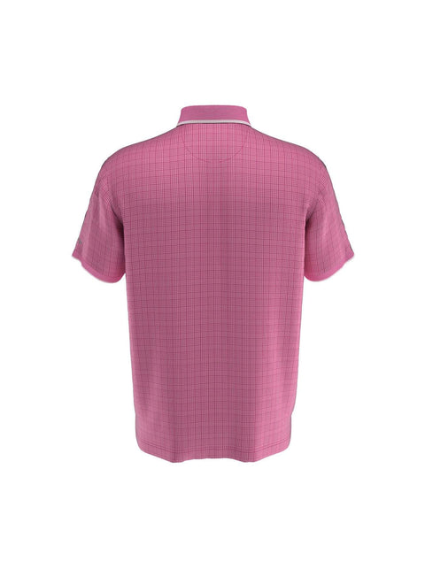 This lightweight men's golf shirt from Callaway lets you perform at your best in style. Built-in Swing Tech technology and added stretch enhance your range of motion for a seamless swing. Moisture-wicking technology keep you dry, and cooling technology transfers heat away from your body to keep you cool. UPF 50 protects against the sun's harmful UV rays. A classic allover print and tipping at the ribbed collar and cuffs complete the smart-looking golf polo.