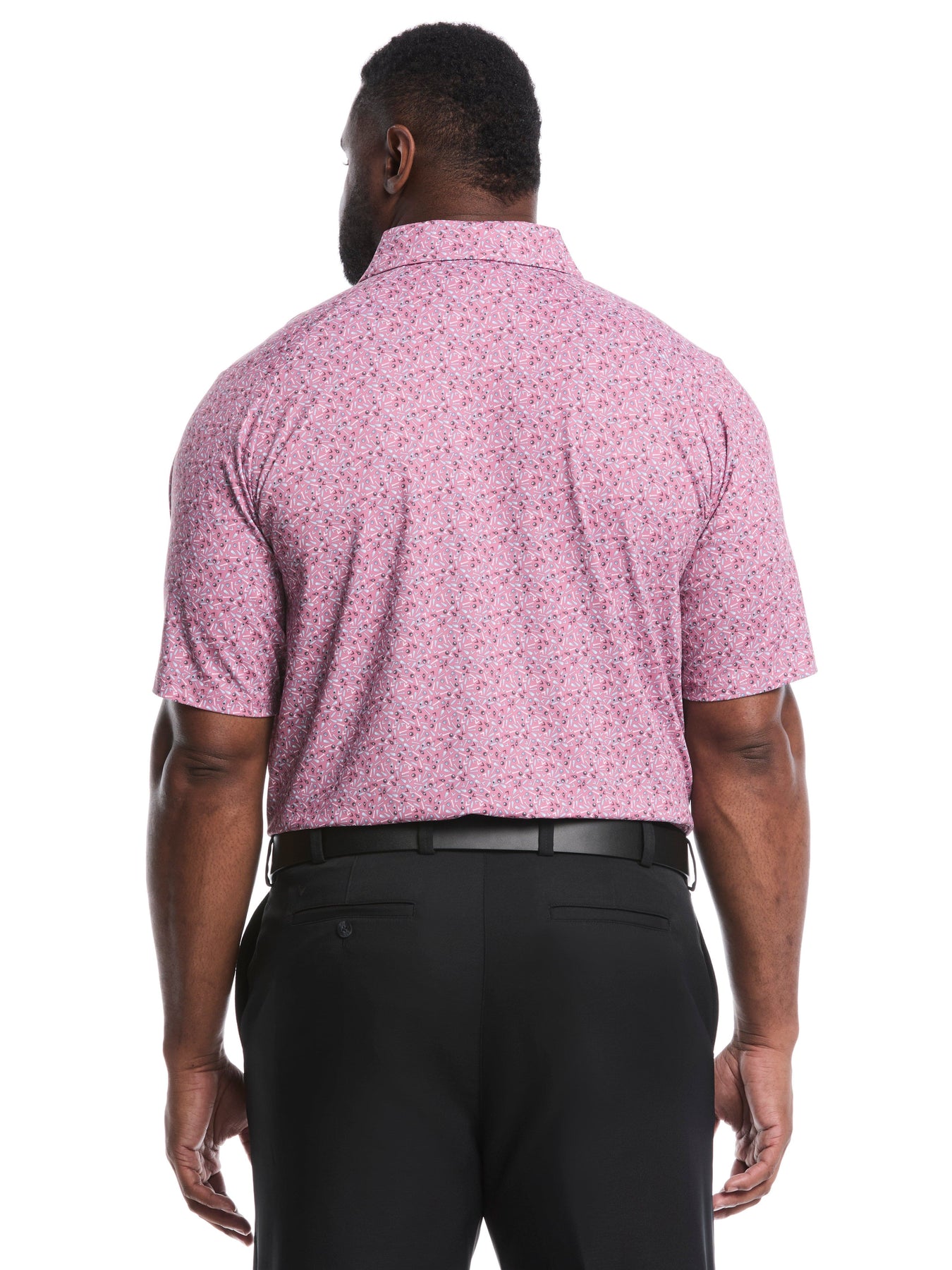Hit the green in style and comfort with this men's golf polo from Callaway Apparel! Its fun confetti print isn't just for looks—it's packed with performance. You'll stay cool and dry thanks to moisture-wicking tech and UV sun protection. Plus, the stretchy fabric with Swing Tech™ gives you full range of motion. Made with recycled materials and super easy to care for, this polo helps you look sharp, play well, and feel good about your choice. Grab yours in regular or Big & Tall sizes.
