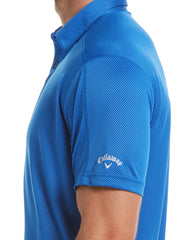 This Callaway denim jacquard performance polo is a necessity for the 19th hole. Keeping the polyester fabrication for a lightweight, breathable feel, we finished your polo with an intricately raised jacquard woven pattern to create thin, textured diagonal lines throughout. Callaway's Opti Dri™ moisture wicking technology pulls sweat away from your body to keep you cool in the heat, cooling technology transfers heat away from your body to keep the garment cool and UPF 50 provides superior protection by blocking the sun's harmful UV rays.