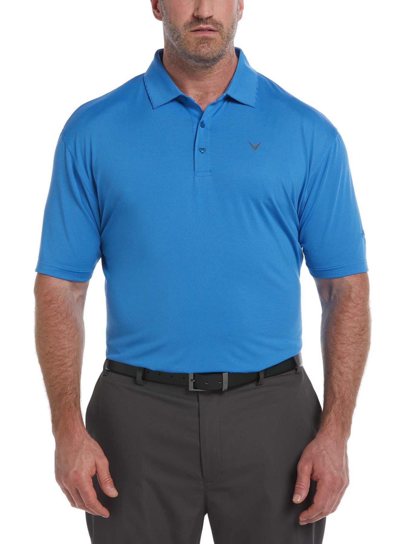 Instantly elevate your game and your on-course style with this versatile Callaway Pro Spin men's golf polo. It’s built for comfort and performance with soft and breathable jersey fabric that contains added stretch for a full range of motion from tee to green. This short sleeve golf shirt is equipped with moisture-wicking Opti-Dri technology to help keep you feeling cool and dry and it has UPF 30 sun protection to safeguard your skin from the sun's harmful UV rays. Fine line stripes bring fashionable flair to this sporty men’s polo shirt and the classic golf fit provides roomy comfort while you play through. Fashionable and functional, this performance golf top is available in a full range of regular and Big & Tall sizes to comfortably accommodate any avid golfer.