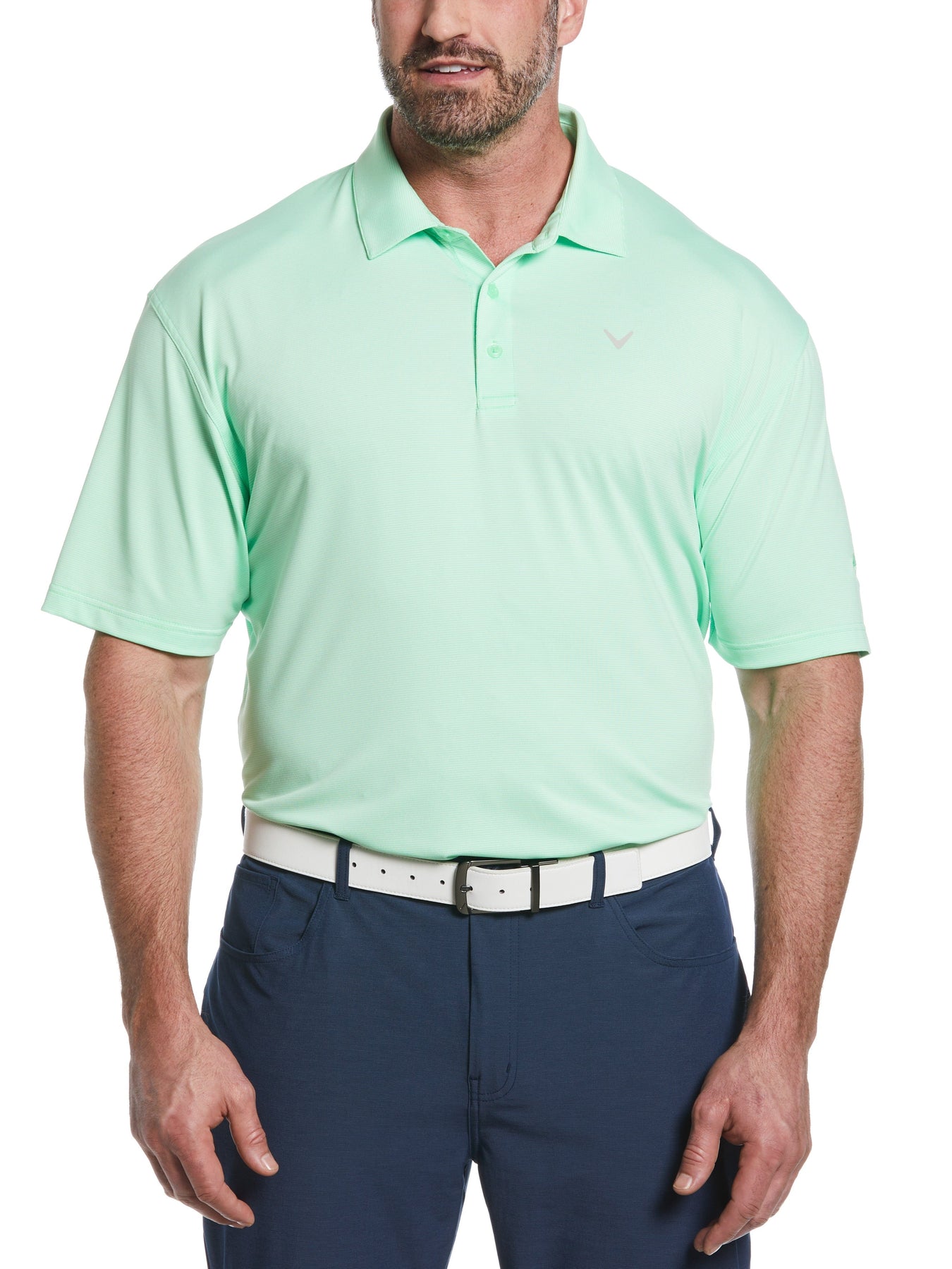 Instantly elevate your game and your on-course style with this versatile Callaway Pro Spin men's golf polo. It’s built for comfort and performance with soft and breathable jersey fabric that contains added stretch for a full range of motion from tee to green. This short sleeve golf shirt is equipped with moisture-wicking Opti-Dri technology to help keep you feeling cool and dry and it has UPF 30 sun protection to safeguard your skin from the sun's harmful UV rays. Fine line stripes bring fashionable flair to this sporty men’s polo shirt and the classic golf fit provides roomy comfort while you play through. Fashionable and functional, this performance golf top is available in a full range of regular and Big & Tall sizes to comfortably accommodate any avid golfer.