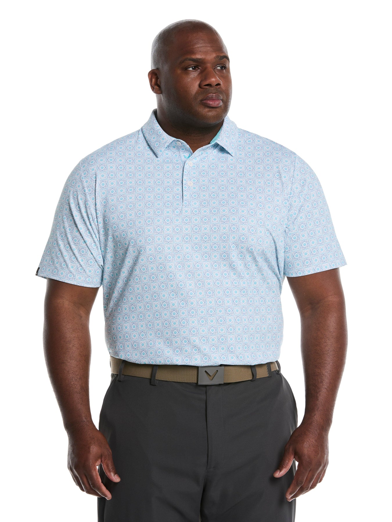 Elevate your on-course style with the Callaway Short Sleeve Golf Foulard Print Polo. This polo features a sophisticated foulard print, adding a touch of classic elegance to your golf attire. Designed for performance as well as style, the shirt is made from a blend of polyester, recycled polyester, and elastane, offering excellent stretch and freedom of movement thanks to Swing Tech™ technology. UPF 50 sun protection and moisture-wicking properties keep you comfortable and protected from the elements. The easy-care fabric and traditional self-collar complete this stylish and functional polo.