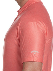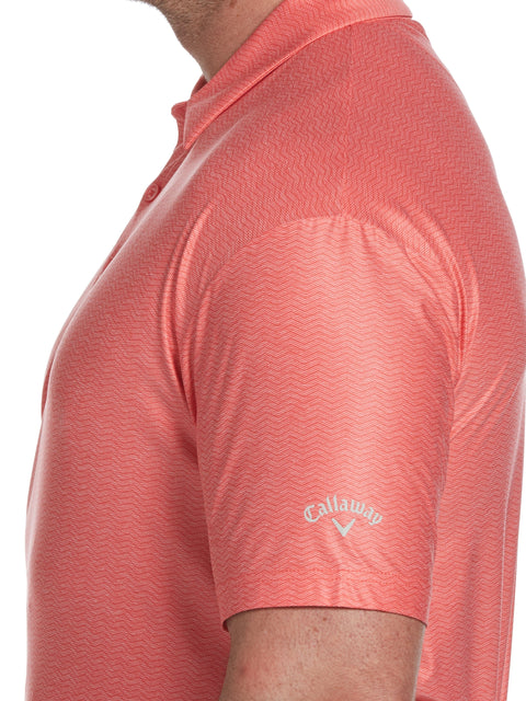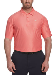 Sophisticated style and performance come together in this men's golf shirt from Callaway. Jaspe fabric creates a multi-hued appearance and is enhanced with a subtle geometric print. Stretch fabric provides a full range of motion for a flawless swing. Moisture-wicking technology keeps you dry, and cooling technology transfers heat away from your body to keep you cool. Completing the impressive golf polo, UPF 50 protects your skin from the sun's damaging UV rays.
