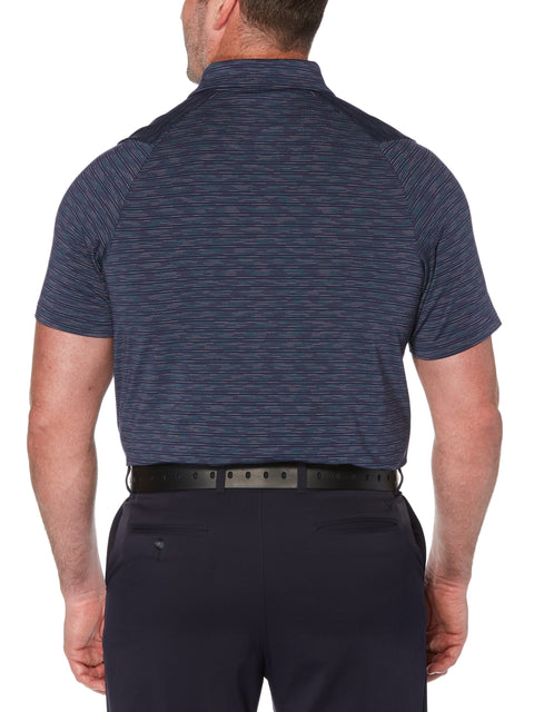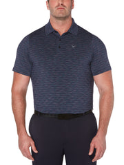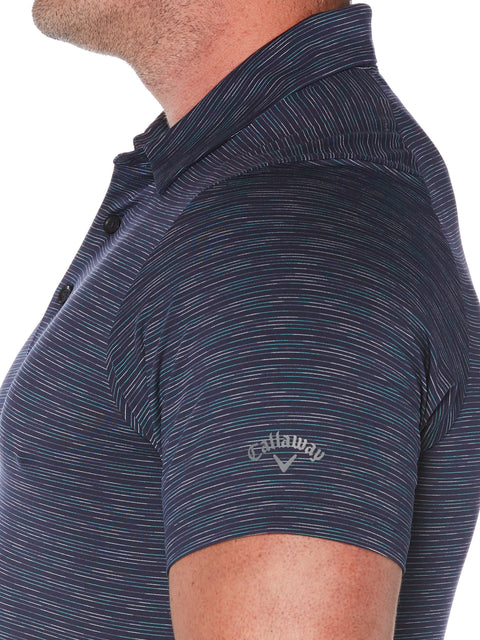 This Callaway golf polo delivers on and off the course. Subtle stripes feature a marled texture for an attractive, two-toned appearance. Stretch fabric ensures maximum range of motion, so you can swing for the green without restriction. When every shot counts, this golf shirt helps keep you in rhythm.