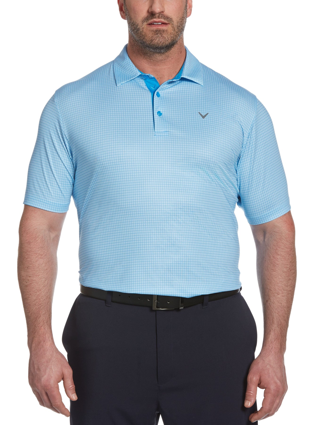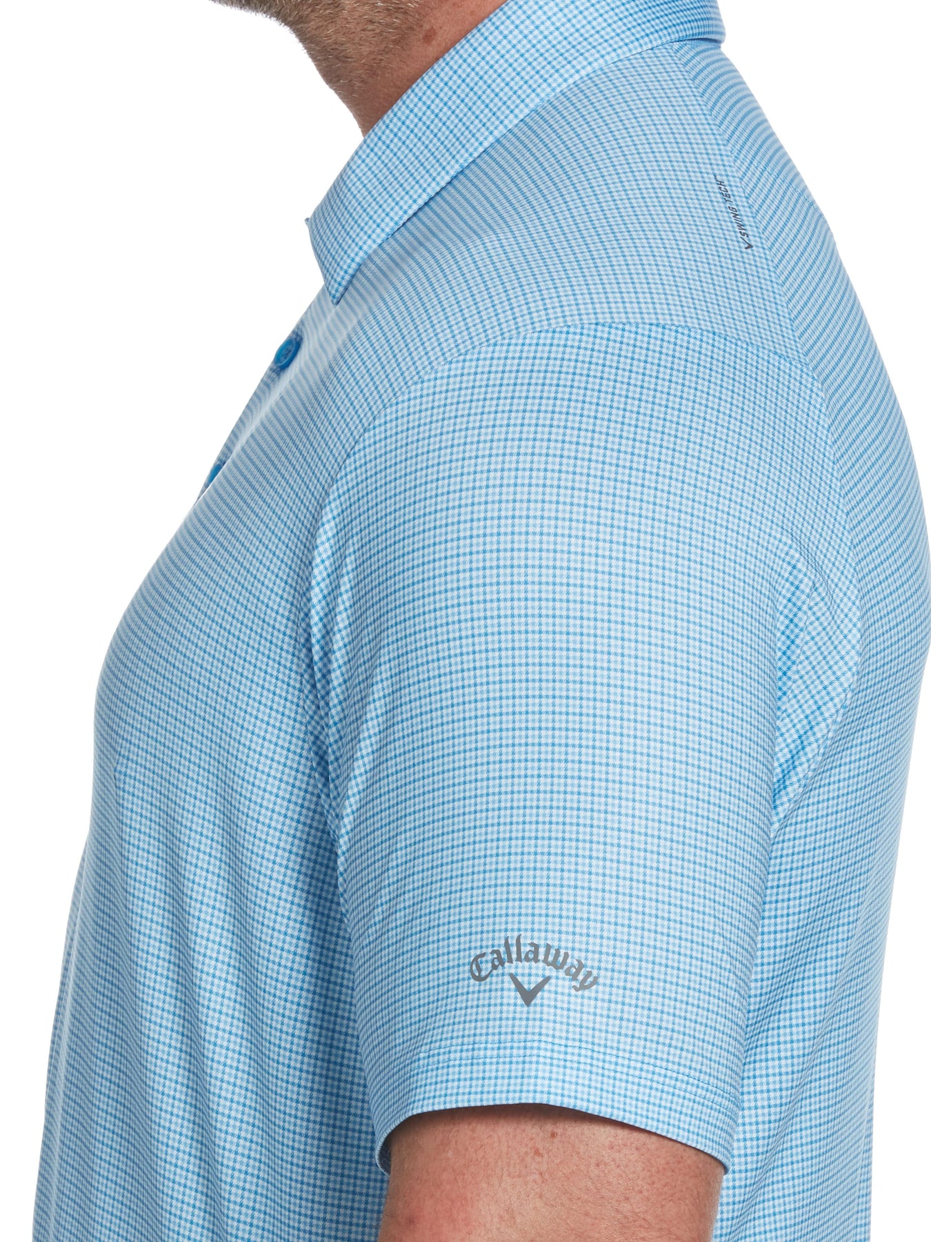 A unique micro tattersall print gives this Callaway golf polo visual appeal to go with its impressive performance. Swing Tech provides greater flexibility through the shoulders, delivering enhanced range of motion with every swing. Complete with a three-button placket and self collar, this lightweight men's golf shirt is an optimal blend of fashion and function.