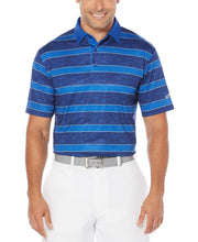 Rotate off the driving range and get hit the links in this Callaway heathered rugby stripe polo. Horizontal stripes are separated by thin lines for an added emphasis. You shirt is finished with a heathered fabrication, alternating between light and darks threads to create a two-toned look. Jersey fabrication creates tiny slits in the polo that maximizes breathability and allows you to cool down quickly. Callaway's Opti Dri™ moisture wicking technology pulls sweat away from your body so you can cool down in the heat, Opti-Stretch allows you to attack the green by providing your arms the freedom to produce a fluid swing and Opti-Shield gives your skin superior protection against the sunÂs UV rays.
