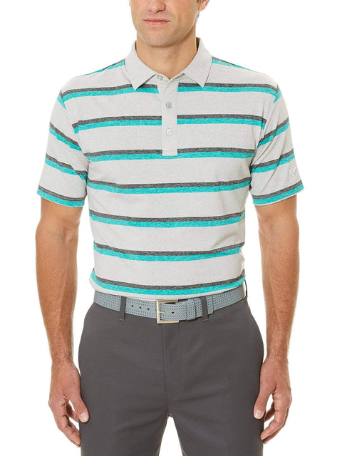 Whether you're playing from the tips or the front tees, every golfer should have a traditionally striped polo in their closet, and our Big and Tall Opti-Soft Performance Heather Printed Polo will look great on you. With the Callaway Chevron logo on the left sleeve, the time-tested, dual-color striped design sits horizontally on a heathered polo, creating a two-toned effect that goes perfectly with solid-colored shorts or long pants. Our Opti Dri™ moisture-wicking technology pulls sweat away from your body so you can cool down in the heat, Opti-Stretch allows you to attack the green by providing your arms the freedom to produce a fluid swing, Opti-Shield gives your skin superior protection against the sun's UV rays and Opti-Soft finishes your polo with a soft feel for enhanced comfort.