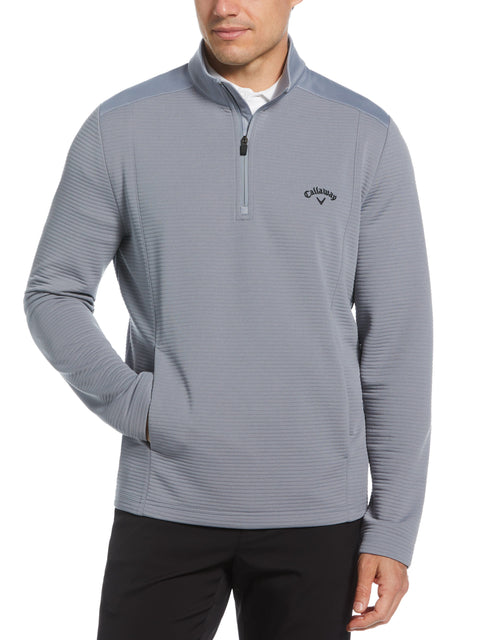 Elevate your performance and look with this long sleeve layer top from Callaway Apparel. Crafted from ottoman textured fabric, this stylish and comfortable golf base layer has built-in Opti-Dri™ technology to effectively wick moisture away from your body keeping you feeling cool and dry as you play. The quarter-zip golf top is designed with sun protection technology, working to keep you protected from harmful UV rays. Its classic double knit fabric makes the long sleeve shirt extremely durable so you can wear it under any attire on and off the course.