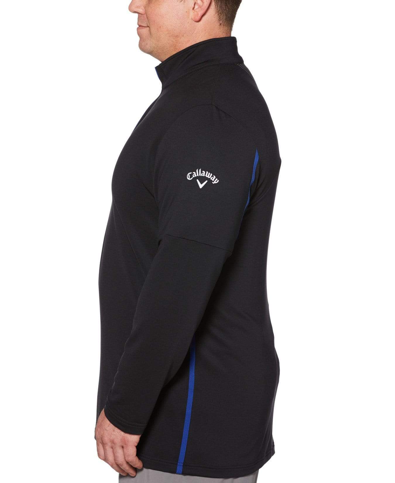 Outlast the inclement weather with style and comfort in this big & tall Callaway premium mid-layer pullover. The jacket features Outlast technology, which proactively manages the build up of heat and moisture to keep you cool in warmer weather and warm in cold weather, helping you stay comfortable day and night. Callaway's Temp: retains and releases body heat to ensure you always feel comfortable, Opti Dri™ moisture wicking technology pulls sweat away from your body so you can cool down in the heat, Stretch: allows you to attack the green by providing your arms the freedom to produce a fluid swing and Shield: gives your skin superior protection against the sun's UV rays.