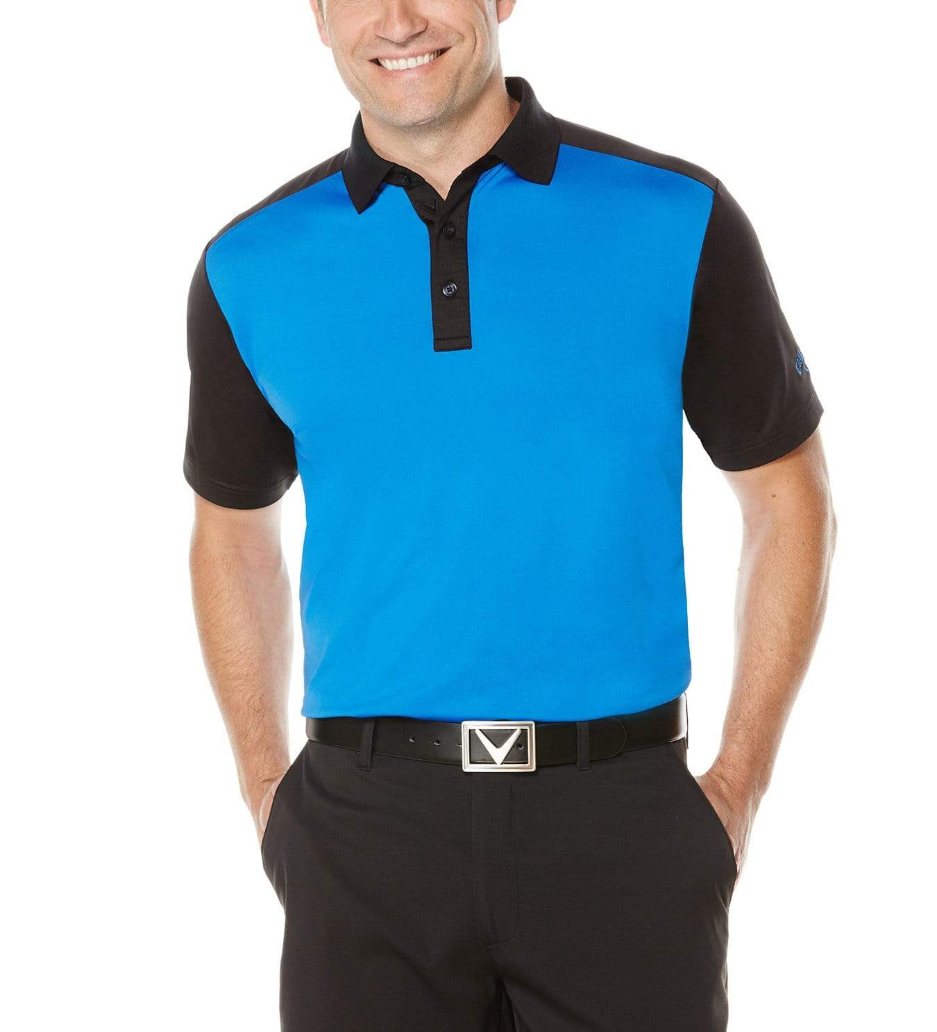 A bold hue enlivens the front placket and sleeves of the Callaway Big & Tall Golf Performance Color Block Short Sleeve Polo Shirt. Opti Dri™ fabric technology channels moisture away from your body, Opti-Shield provides a layer of protection from the sun's harmful rays and Opti-Stretch material lets you enjoy maximum range of motion.