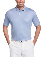 Comfort and style come together in this fashionable Callaway men's golf polo. Light and breathable stretch fabric moves with you to maximize range of motion. Built-in sun protection prevents harmful UV rays from penetrating the fabric of the Big and Tall golf top, helping to protect covered skin on sunny days spent outdoors. A subtle allover gingham print gives the golf shirt versatile style.