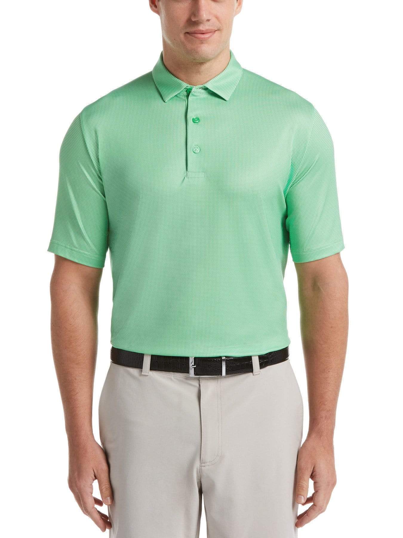 Our Callaway men's golf polo offers just the right amount of stretch so you can perfect your swing. It has an allover gingham print that looks great on the course and features built-in Opti Dri™ moisture-wicking technology to pull sweat away from your skin. This sleek men's golf top is equipped with UPF 50 sun protection to block the sun's harmful rays.