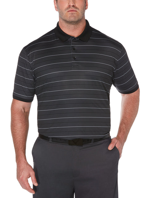 This Callaway golf polo makes a versatile addition to your existing golf wardrobe. A classic houndstooth pattern enhances the striped design for a look suited to both the clubhouse and the green. Sturdy stretch fabric moves with your every swing, so you'll ease on down the fairway with smooth, natural rhythm.