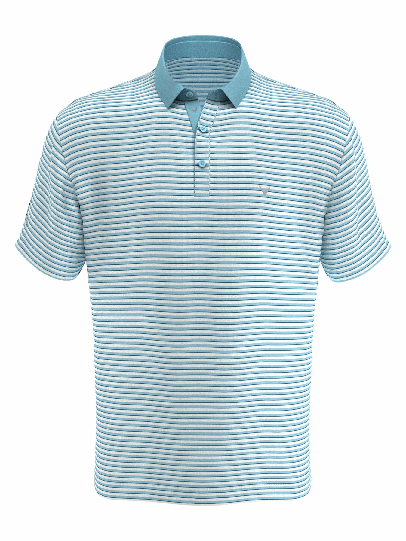 This versatile men's golf polo from Callaway is designed with refined three-color striped print making it a fashionable complement to a variety of solid-colored bottoms. Opti Dri™ moisture wicking technology built into our big and tall golf polos pulls sweat away from the body for on-course comfort throughout your round. Built-in sun protection prevents harmful UV rays from penetrating the fabric of the Big and Tall golf top, helping to protect covered skin on sunny days spent outdoors.
