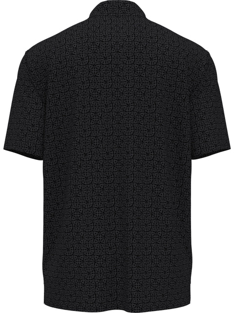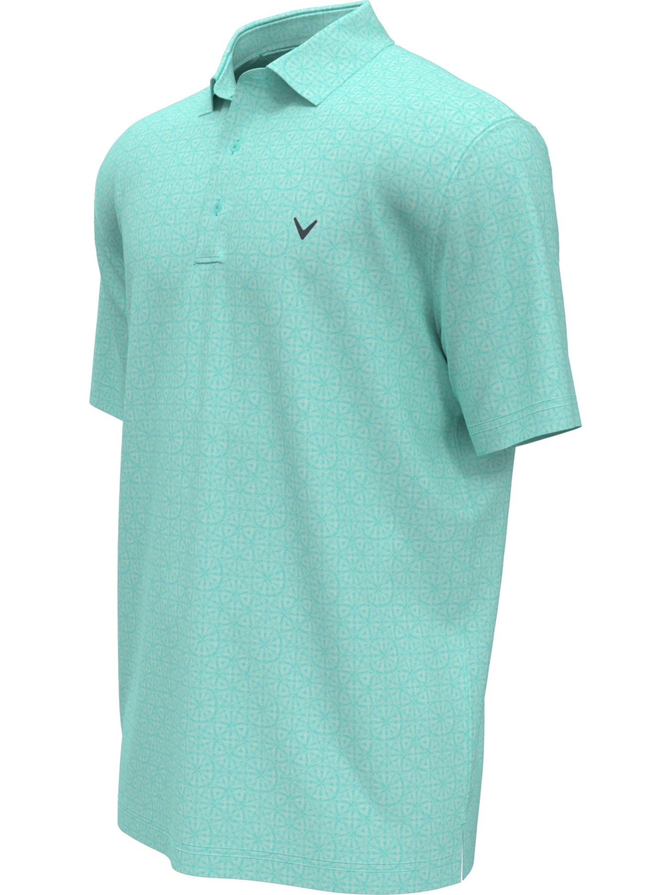Covered from top to bottom with a funky foulard print, this Callaway men’s golf shirt will help you set your style apart out on the course. The short sleeve golf shirt has sun protection and moisture wicking technologies to help keep you comfortable and dry. The shirt is made with a soft jersey knit fabric that features added stretch to let you swing smoothly.