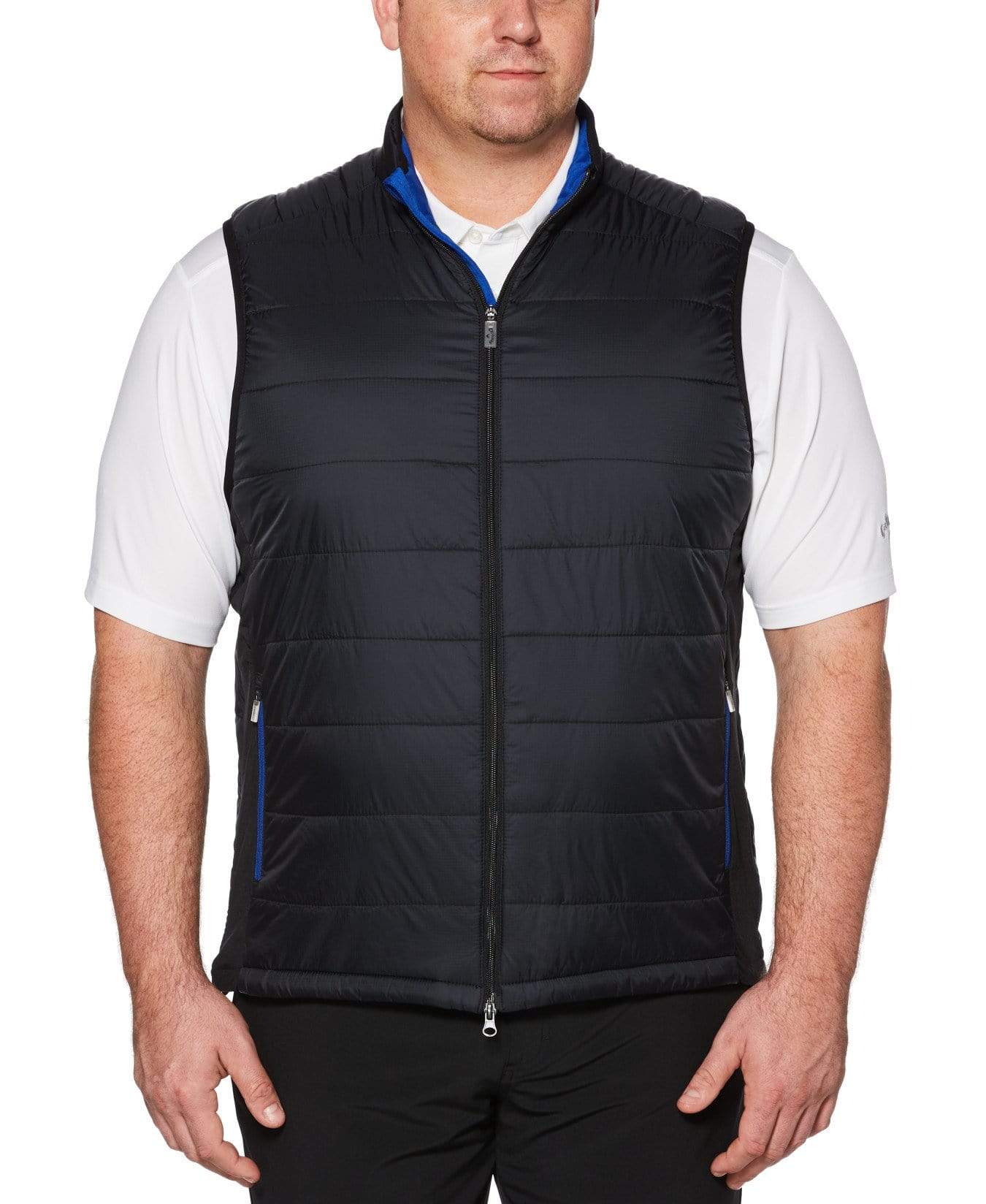 Take a victory lap around the 18th green because you successfully navigated the round in slightly inclement weather. With its fiber-filled puffer front that's sewed to keep you warm, this big & tall Callaway sleeveless vest has you covered on the latter. A solid-colored main fabrication is accented by a secondary color on the two front zipper pockets and inside collar. Callaway's Thermal keeps you warm by creating a barrier between you and the cold weather and Stretch allows you to attack the green by providing your arms the freedom to produce a fluid swing.