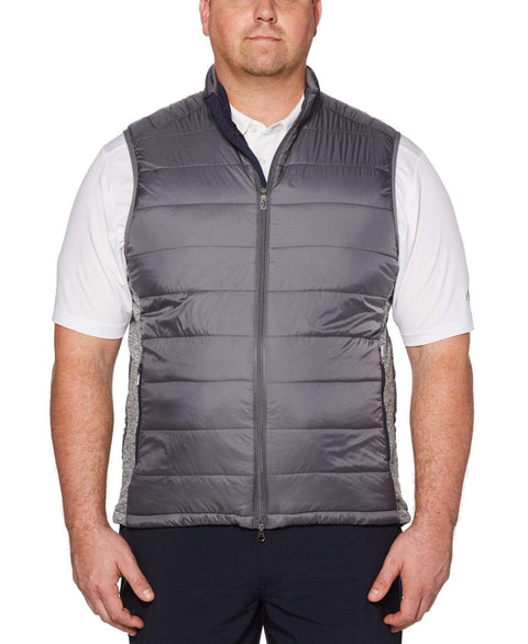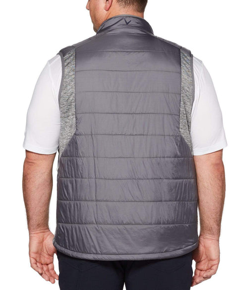 Take a victory lap around the 18th green because you successfully navigated the round in slightly inclement weather. With its fiber-filled puffer front that's sewed to keep you warm, this big & tall Callaway sleeveless vest has you covered on the latter. A solid-colored main fabrication is accented by a secondary color on the two front zipper pockets and inside collar. Callaway's Thermal keeps you warm by creating a barrier between you and the cold weather and Stretch allows you to attack the green by providing your arms the freedom to produce a fluid swing.