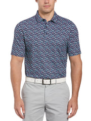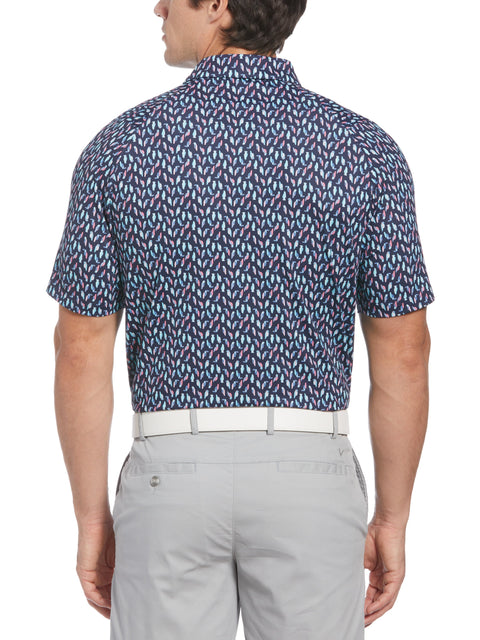 Be inspired to play your best in this Callaway men's golf polo shirt that features a birdie and eagle print. The golf polo has stretch and Swing Tech™ for unrestricted motion and smoother swings. Made from lightweight, single-knit eco-friendly recycled polyester, it's ventilated keep you feeling cool as you play.