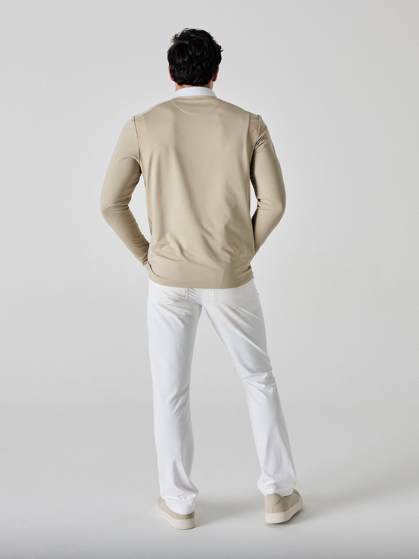 Premium woven piecing on the shoulders and back adds a sophisticated modern update to this long sleeve golf shirt from the Callaway Legacy Collection™. The men’s golf top is made with terry fabric, which gives it a soft, warm feel perfect for cooler days out on the fairway. A contrast-colored ribbed collar adds some extra visual punch to the design, while a circular Callaway logo on the chest gives the look a sharp finishing touch.