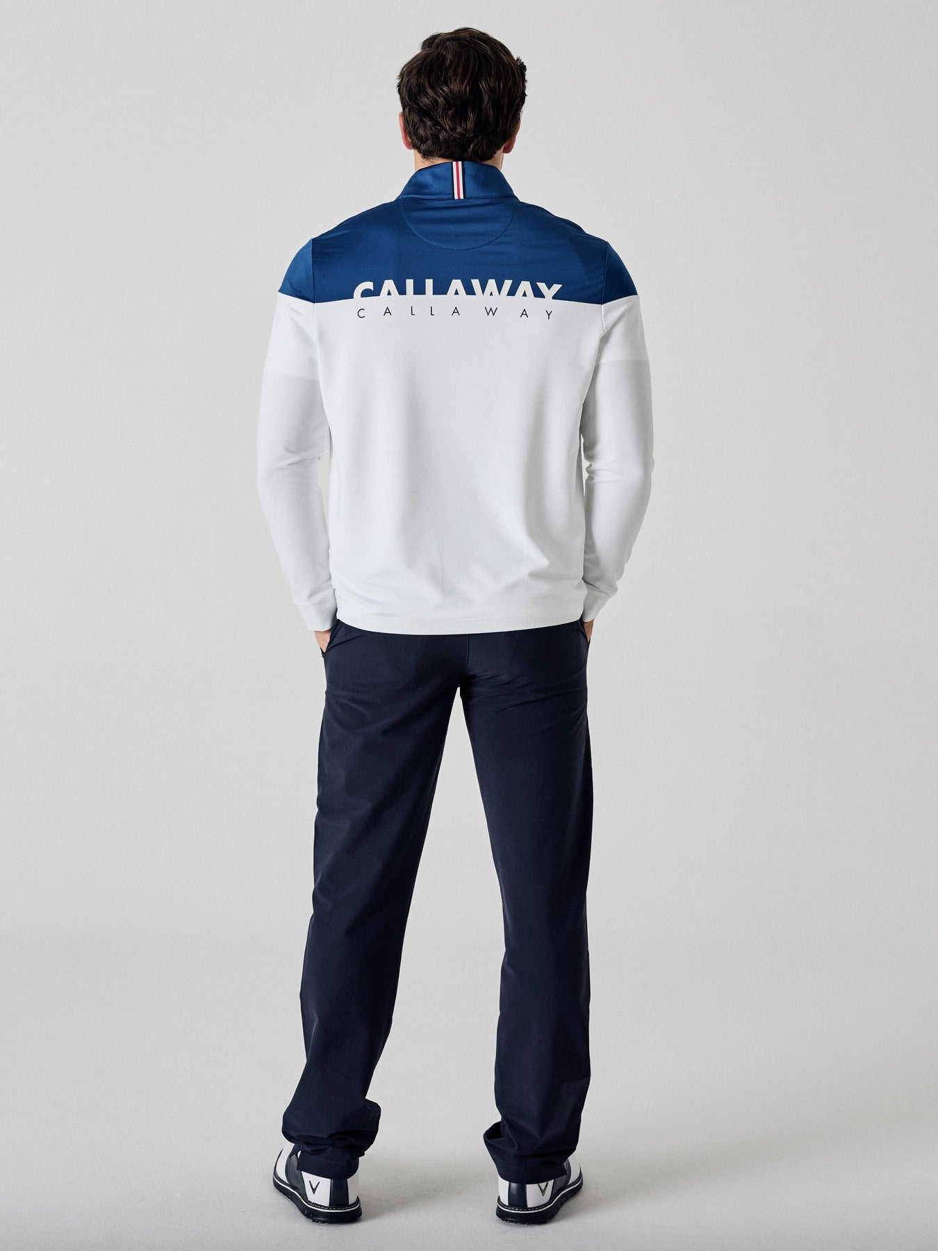 Made with soft, warm terry fabric, this sweater from the Callaway Legacy Collection™ is a smart way to keep the chill off during your next round. The quarter zip pullover features an eye-catching color blocked design, with Callaway logos on the back for athletic flair. The high mock collar helps to shield your neck from the elements, and it has a Triple Track detail at the back for a sophisticated finishing touch.