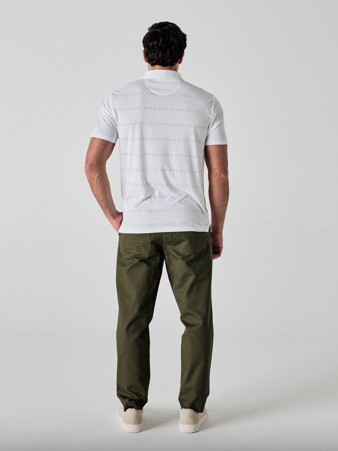 Elevate your athletic wardrobe with this sharp men’s golf shirt from the Callaway Legacy Collection™. The golf polo shirt is crafted from jacquard fabric, which has a raised pattern woven into its surface for a sophisticated textured look. Stylized logos across the fabric add eye-catching flair, while moisture-wicking technology helps to keep you comfortable and dry as you play.