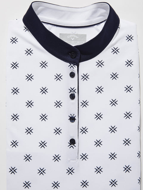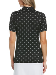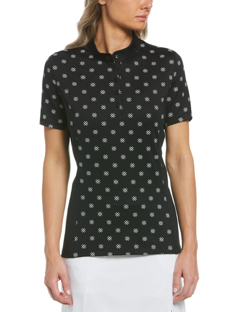 Designed for effortless movement with every shot, these performance womens golf polos are equipped with Swing Tech™ for added stretch in the shoulder seams for a full range of motion. This short sleeve golf top pops with a chevron floral print that is versatile enough to pair with a wide variety of bottoms.Opti Dri™ moisture wicking technology built into our womens golf shirts pulls sweat away from the body for on-course comfort throughout your round. Built-in sun protection prevents harmful UV rays from penetrating the fabric of the golf top, helping to protect covered skin on sunny days spent outdoors.