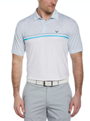 Experience comfort as you play with this Callaway men's golf polo shirt. Made with Opti-Dri™ moisture-wicking technology, this golf top helps you feel dry and cool throughout your game. The soft jersey fabric includes stretch for a full range of motion. Finished with sun protection and a stylish color block pattern, this short-sleeved golf shirt combines functionality and fashion for the course.