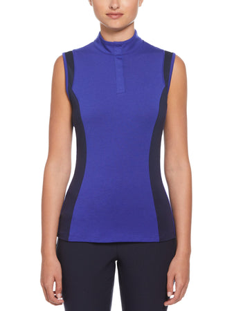 Free up your swing with this women’s sleeveless golf shirt from Callaway. This fashionable and functional golf polo features a modern color block design that looks great on or off the court. A snap-front mock collar allows for easy on and off and mesh detailing around the top provides breathable comfort. This sleeveless golf top features Opti-Dri™ moisture-wicking technology to help you stay cool and dry, and soft stretch jersey fabric for a flexible fit that won’t hold you back.