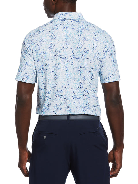 Turn each round into a celebration of your style with this Callaway golf shirt and its bold confetti print. The men’s golf polo is ventilated and equipped with moisture wicking to help you stay cool and composed as you line up each shot. A generous amount of stretch in the material and Swing Tech™ allow for a full range of motion, so you can swing freely wihtout restriction. The polo shirt is crafted from a lightweight single knit fabric, and it’s made with 30% recycled polyester for improved sustainability.