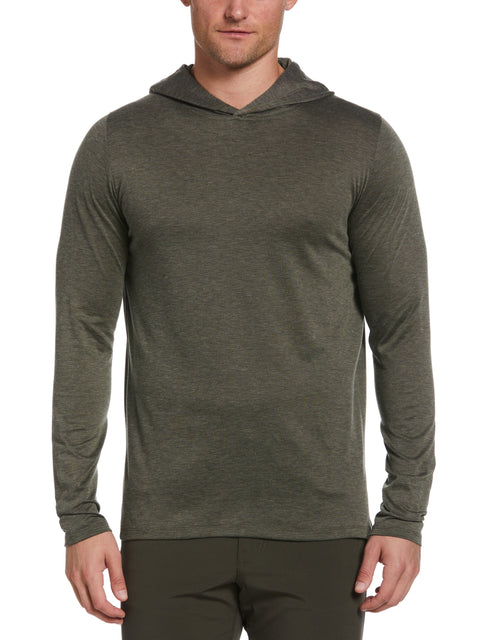 A versatile solid-colored sweater loaded with performance features, this Callaway golf hoodie is crafted from durable double knit fabric for a smooth, structured look. The men’s golf pullover is equipped with moisture wicking to help keep you cool and dry while you’re playing. The fabric has added stretch to help maximize freedom of motion, while Swing Tech™ technology lets you make each smooth, powerful shot without feeling constricted. Great for eco-conscious golfers, this versatile, easy-care men’s golf sweater is made using 30% recycled polyester.