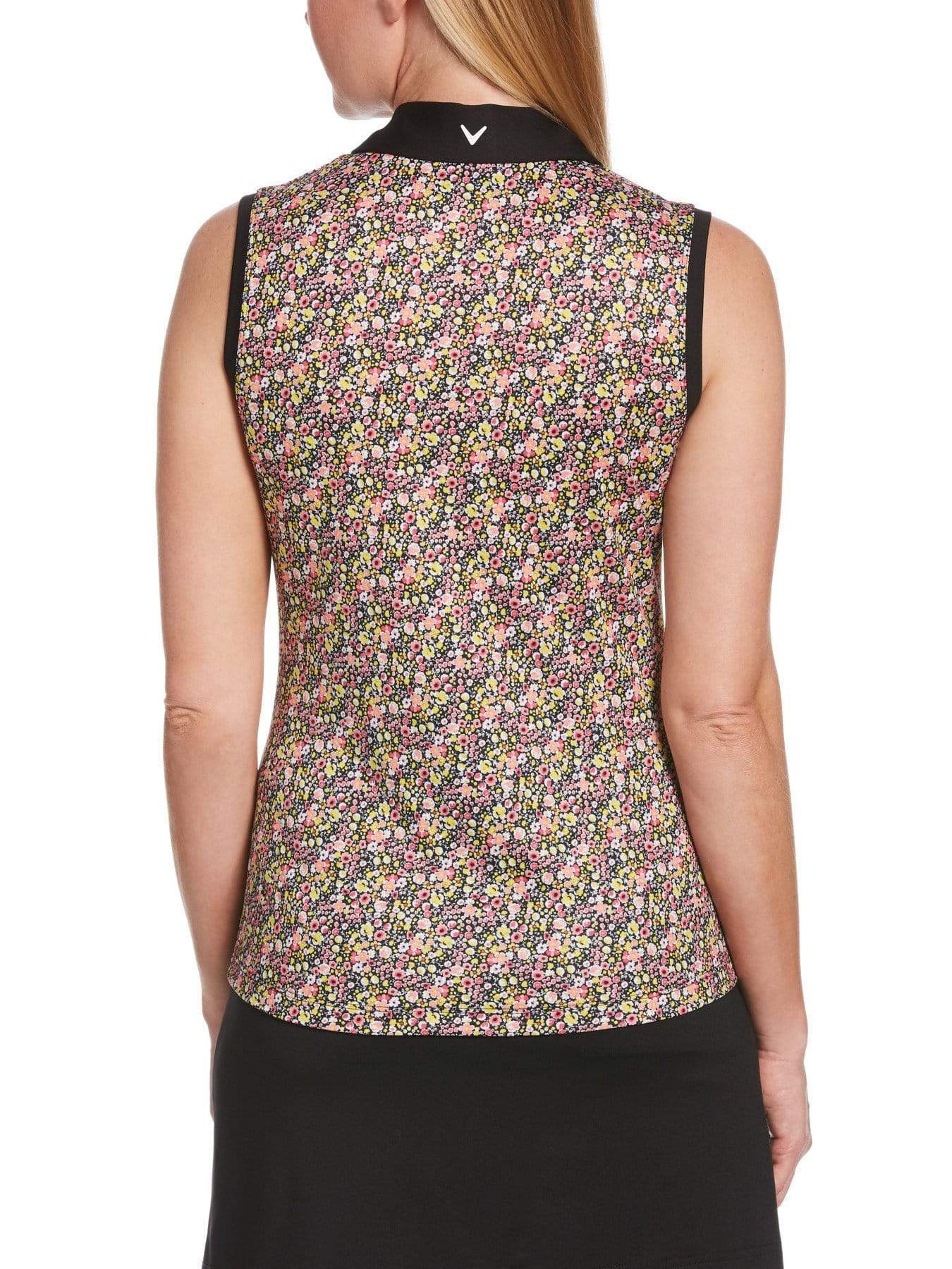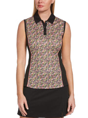 Bring some cheer to your athletic wardrobe with this Callaway women's golf polo's eye-catching ditsy printed front. The sleeveless women's golf shirt is made from sturdy double knit fabric with a hint of stretch for enhanced mobility. Zonal ventilation provides airflow where you need it most while moisture-wicking technology moves sweat away from your body to help you stay dry. The contrasting collar, placket and side panels give the design a sleek, streamlined look.