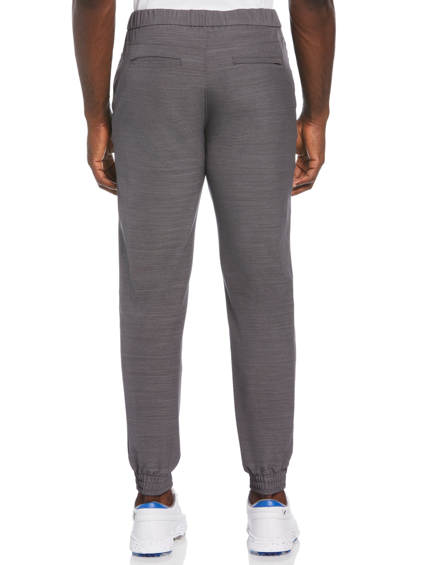 Boast smart-casual style with these Callaway men's golf jogger pants. Stretch in the fabric lets you move with ease down the fairway, and a drawstring waistband allows for a custom fit. UV Block UPF 50 protects against the strong sun. Made from a blend that includes eco-friendly recycled polyester, these pants are a feel-good addition to your golf attire.