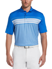 Engineered stripes across the front panel bring energy to this classic golf polo from Callaway. The men’s polo shirt is crafted from light and breathable jersey knit fabric, with moisture wicking to help keep you dry so you can stay focused on making par. The material offers a good amount of stretch, for a comfortable fit and a full range of motion. Sun protection technology helps to block damaging UV rays when you’re playing under clear blue skies.