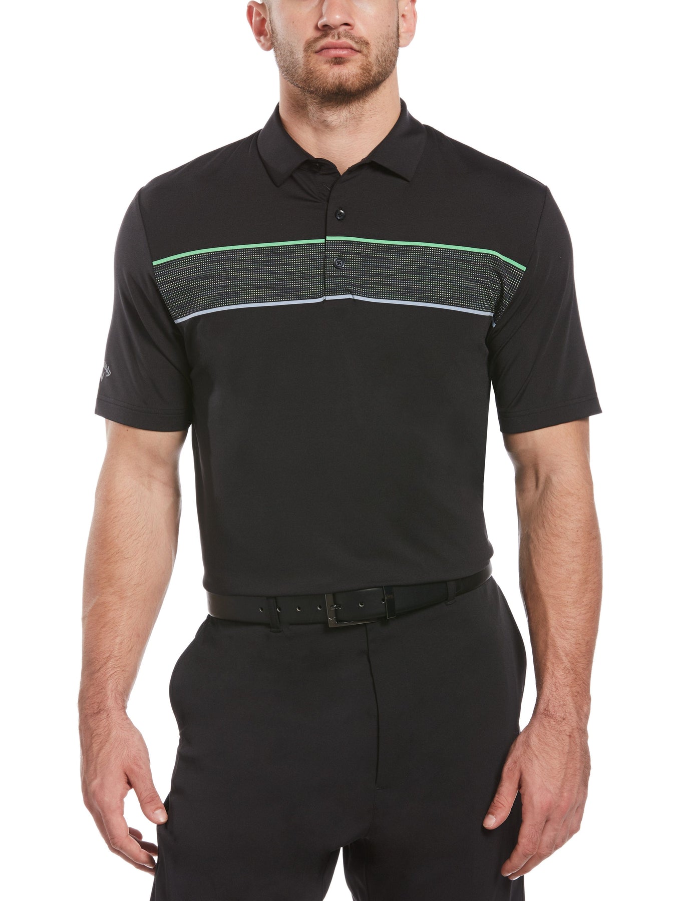 This golf polo from Callaway will take you from the first to last hole in comfort and style. Stretch fabric provides a full range of motion for a flawless swing. Moisture-wicking technology keep you dry, and cooling technology transfers heat away from your body to keep you cool. Jacquard fabric offers a sophisticated, textured pattern and it's finished with a space-dyed chest stripe.