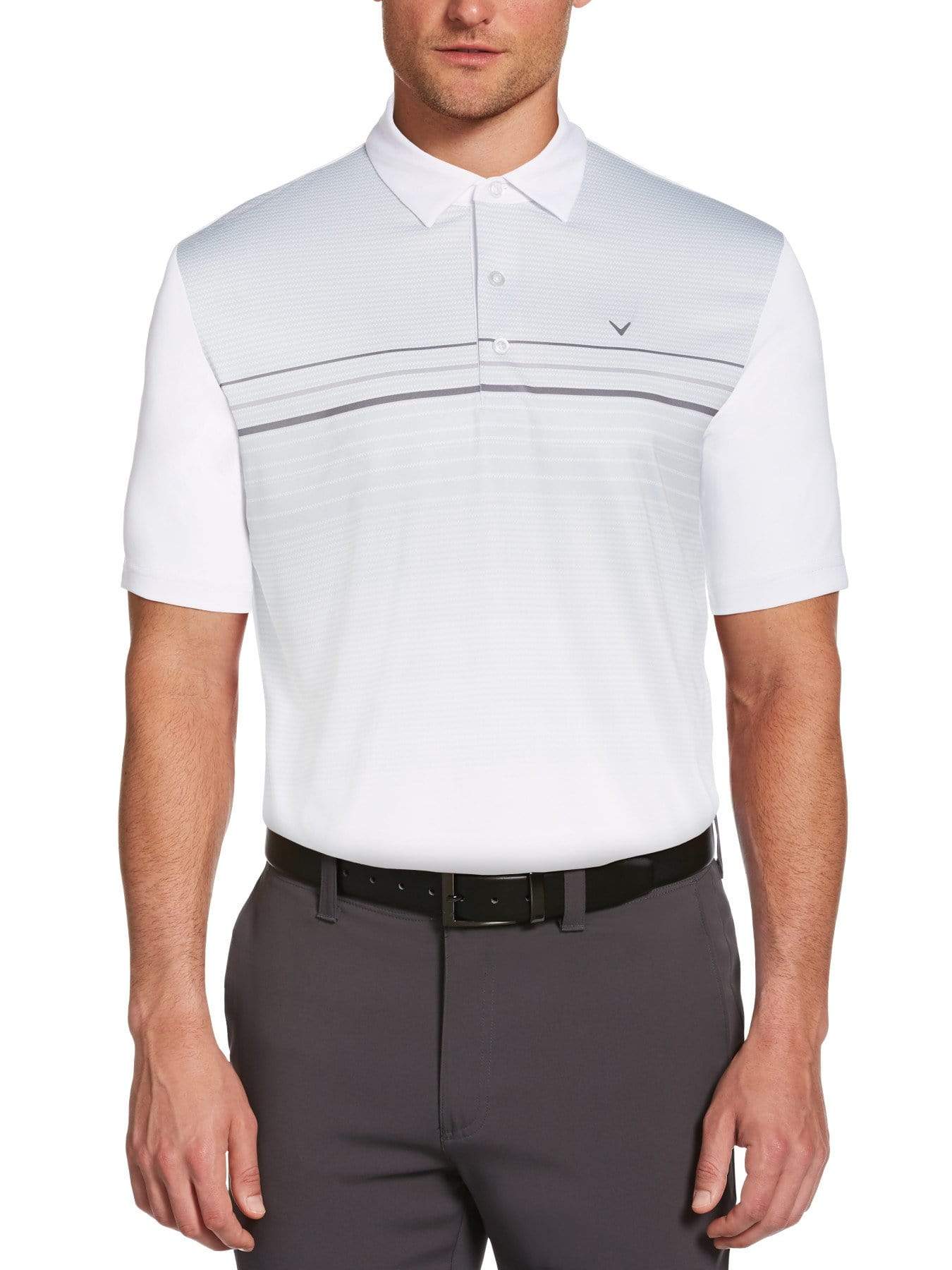 Featuring slim engineered stripes and a gradient effect over the front panel, this Callaway golf polo offers eye-catching modern style. The men's golf shirt has moisture wicking to help keep you dry throughout your round. It's made from soft and lightweight jersey fabric with sun protection technology to help prevent damaging UV rays from penetrating through.