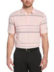 Approach your game in style with this smart-looking Callaway golf polo. Added stretch allows the golf shirt to move with you. Fine line roadmap stripes add fashionable flair, while a ribbed collar and three-button placket exude classic style.